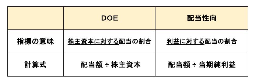 DOEは、株主資本に対してどれだけ配当を行ったかを示す指標です。