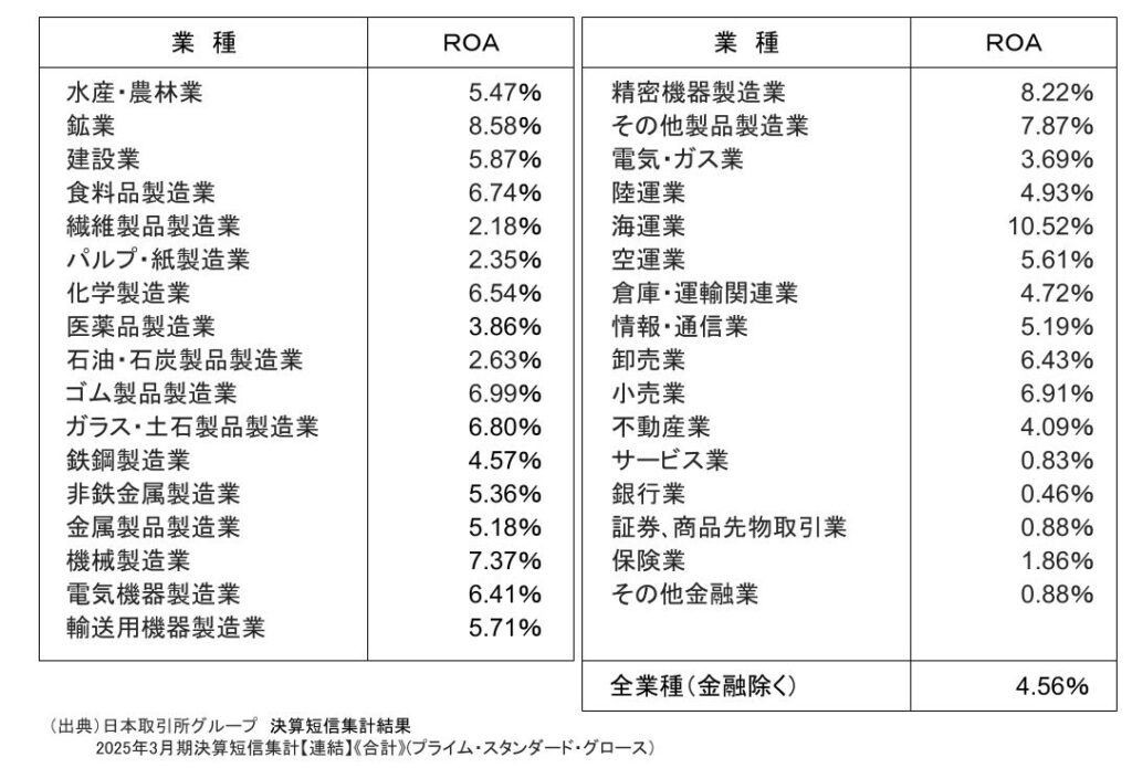 ただし、ROAは業種によって大きく異なるため、単純に数値だけで判断するのは適切ではありません。