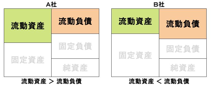 「流動資産>流動負債」の関係となっているA社のほうが、資金的に余裕があると言えます。