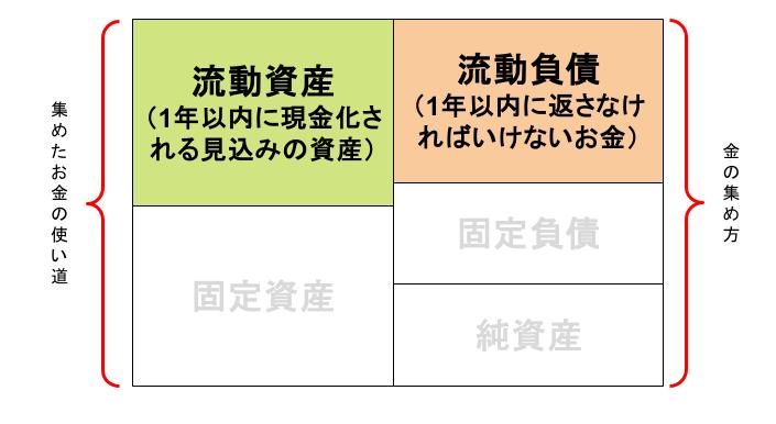 短期の支払い能力見るには、短期的な資産と短期的な負債のバランスに着目します。